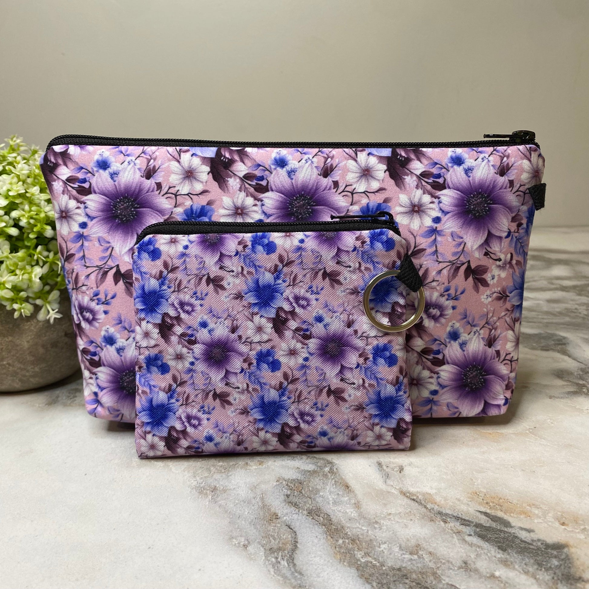 Pouch & Mini Pouch Bundled Set - Floral Purple Blue