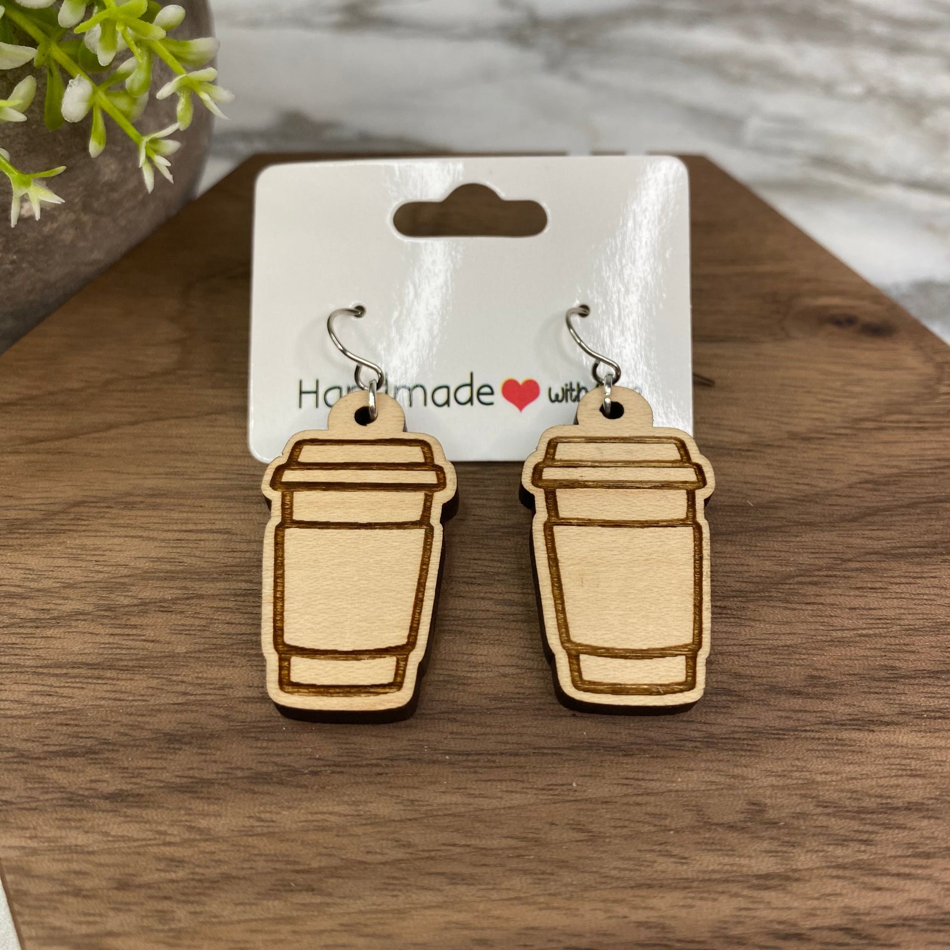 Wooden Dangle Earrings - Tea & Coffee Cup